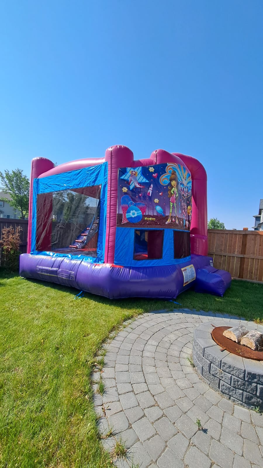 Make your little girl’s special day unforgettable with the It’s a Girl Thing Combo inflatable! Featuring a spacious bounce area, basketball hoop, climbing wall, and thrilling slide, this play area offers hours of fun and adventure. Perfect for kids aged three and up, its sturdy construction ensures safe play throughout the day. Enjoy free delivery to Edmonton and surrounding areas for a hassle-free experience! Dimension is 14'10" W x 17'8" L x 13'10" H. *For all bouncy castle installations, an electrical outlet is required. *Delivery charges may apply based on location outside Edmonton