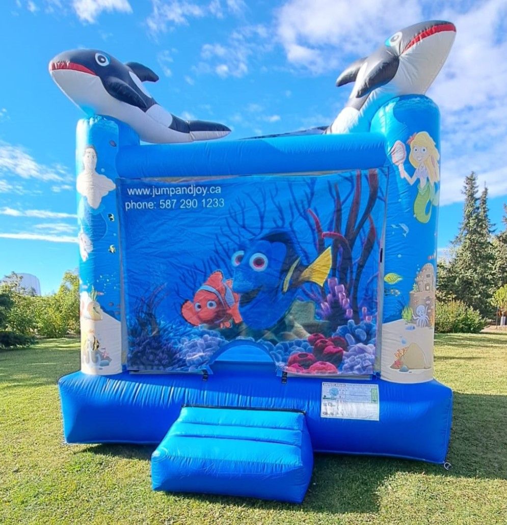 Dive into an underwater adventure with the Ocean Castle! This ocean-themed inflatable, featuring a majestic castle backdrop and vibrant aquatic creatures, offers endless fun for kids as they jump and explore. Measuring 13’4″W x 12’4″L x 16′H, it provides plenty of space for energetic play. Perfect for birthday parties, school events, or community gatherings, the Ocean Castle is sure to make a splash.