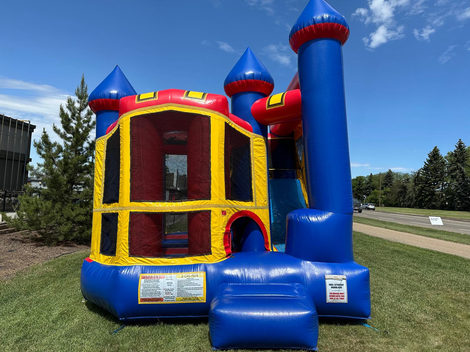 Elevate your outdoor event with the Backyard Combo inflatable! This all-in-one bouncy castle features a spacious 10×14 ft. bounce area, a basketball hoop, a climbing wall, and a thrilling slide, ensuring hours of fun and excitement. Perfect for children aged three and above, it provides safe and active entertainment for birthday parties, school events, and backyard celebrations. At 14'10" W x 17'8" L x 13'10" H, it fits comfortably in most outdoor spaces, making it the ideal centrepiece for any occasion.